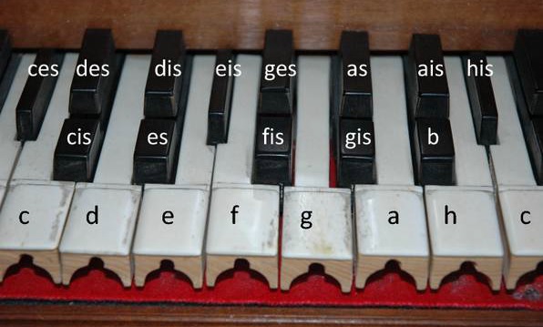 Een ander probleem vormen de tussenliggende halve tonen (de zwarte toetsen op de