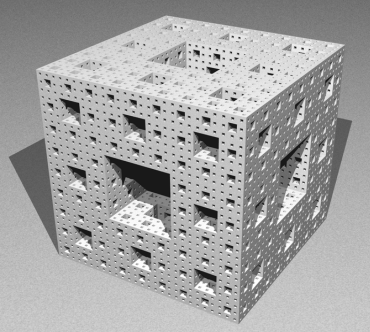 | De fractale dimensie van de spons van Menger = | log 20 | = 2,7268 |