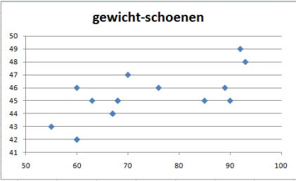 spreidingstabellen In een klas van 16 lln werden gegevens verzameld als vertrekpunt voor deze pagina. We willen nagaan of er een samenhang is tussen deze gevensreeksen. Meerdere gegevens kunnen we samen weergeven in een spreidingsdiagram: