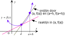 differentiequotiënt van f(x) over het interval [a, b]. Gemiddelde verandering van f(x) over [a, a+h] (We vervangen b door a+h.) De gemiddelde verandering van f(x) over het interval [a, a+h] is